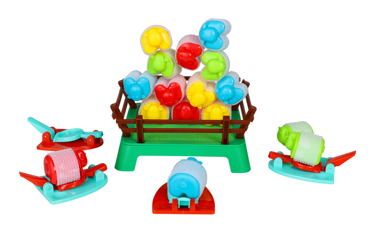 Skyd dine små får afsted med affyringsramperne og forsøg at lande dem på den vippende høstak. Det lyder nemt – men jo flere får der hopper op, jo sværere bliver det at holde balancen. Ét forkert hop, og så vælter det hele!
