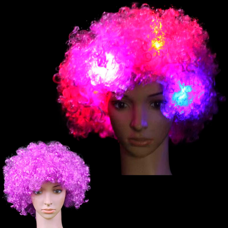 Gør dit outfit ekstra iøjnefaldende med denne lysende krøllede paryk med LED-lys. Perfekt til fest, udklædning, sportsevents, halloween og sjove lege, hvor der gerne må være lidt ekstra wow-effekt.
