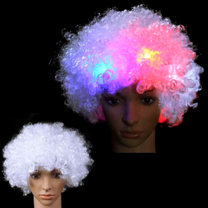 Gør dit outfit ekstra iøjnefaldende med denne lysende krøllede paryk med LED-lys. Perfekt til fest, udklædning, sportsevents, halloween og sjove lege, hvor der gerne må være lidt ekstra wow-effekt.