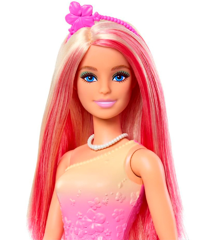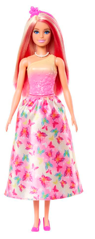 Barbie prinsesse dukke med flot hvidt / pink hår og flot sommerfugle nederdel. De kongelige Barbie-dukker inspirerer til magiske eventyr og fantasifuld leg.