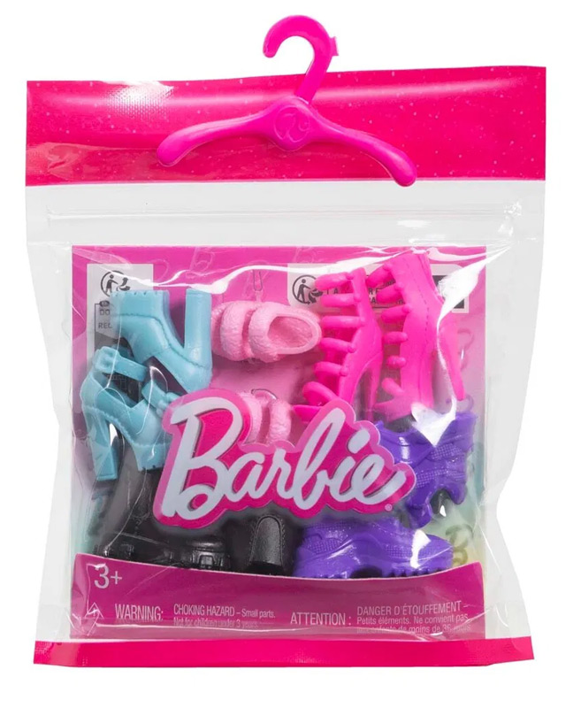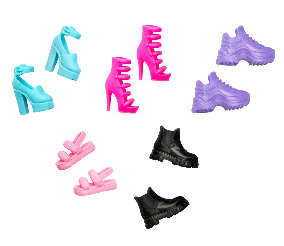 • Indeholder 5 par Barbie-sko: hæle, støvler og sneakers