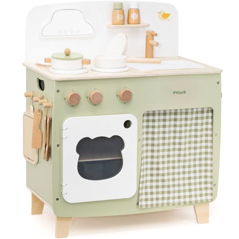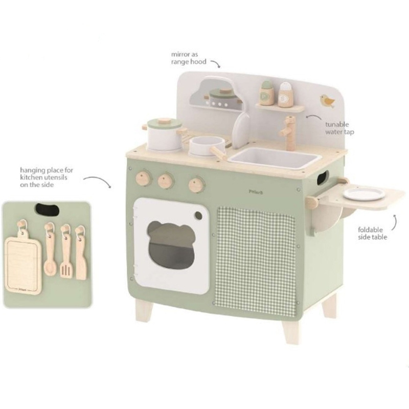 VIGA PolarB Legekøkken i Træ med Foldebord og Skab – Mint forener funktionalitet og æstetik i et holdbart design, der indbyder til mange timers hyggelig rolleleg.