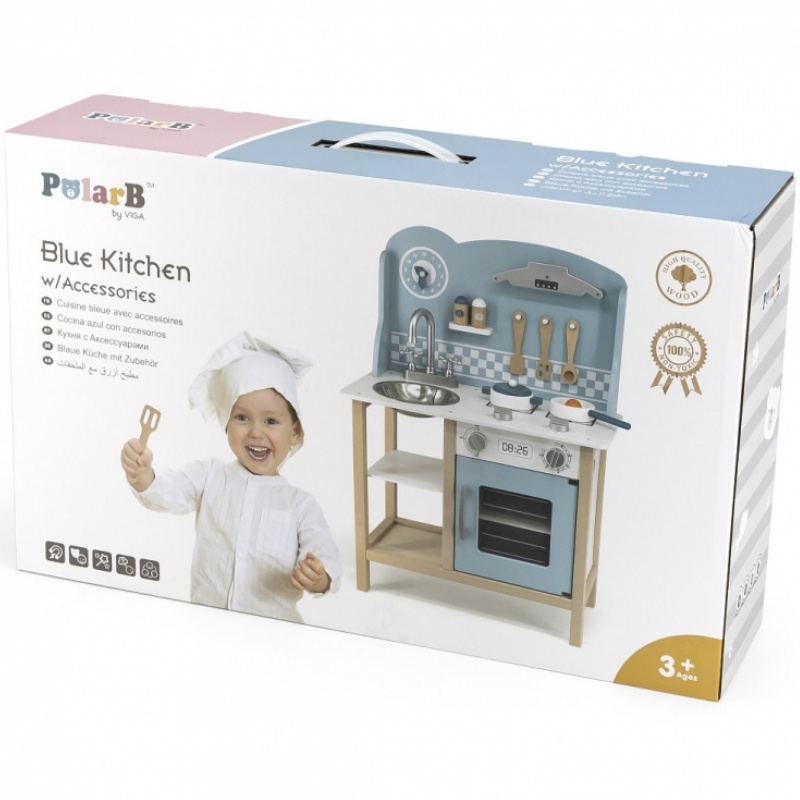 VIGA PolarB Legekøkken i Træ med Tilbehør – Blå (fra 3 år)