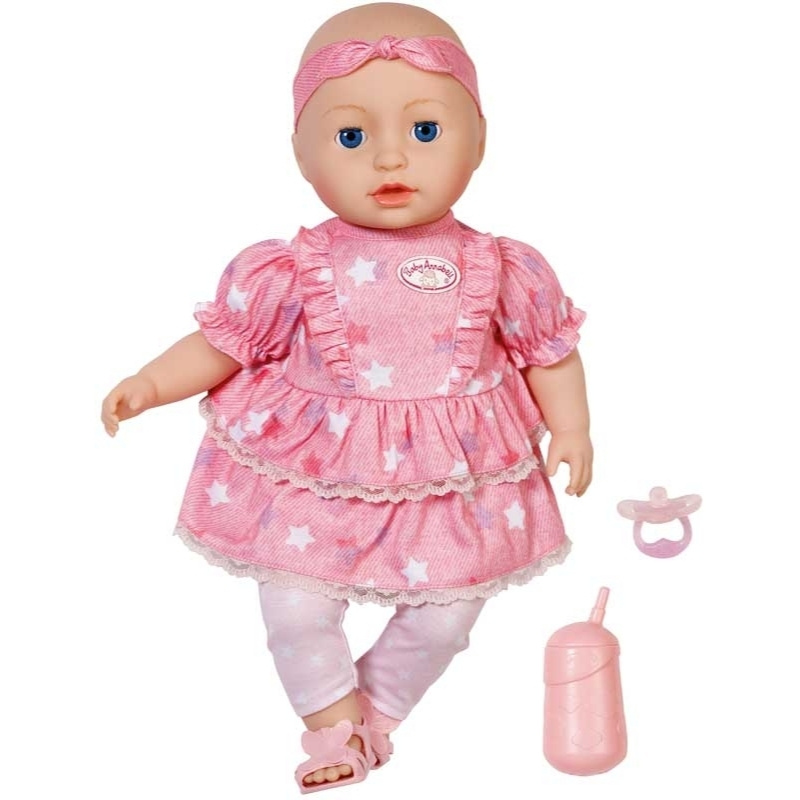 Baby Annabell Mia So Soft er den perfekte dukke til hyggelige kram, pleje og omsorgsleg. Den bløde krop gør hende ideel til små hænder, og hun er designet til at give børn en tryg og realistisk legeoplevelse. Mia er iført et sødt lyserødt sæt og leveres med en matchende sut og sutteflaske, så børn kan passe og pleje hende som en rigtig baby.