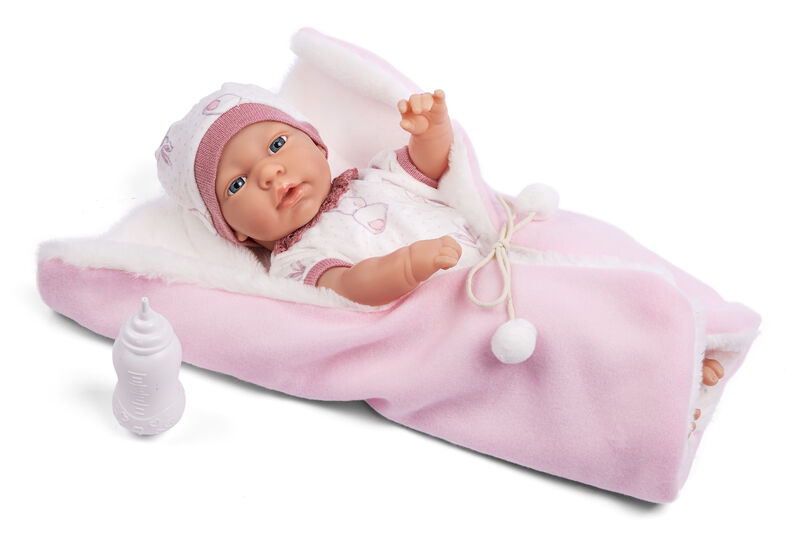 Sød My Baby Liva dukke med blødt tæppe og sutteflaske – klar til masser af hyggelig rolleleg som lille mor.