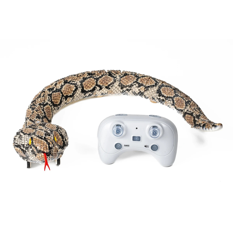 Fjernstyret slange med realistiske bevægelser, lys og simuleret lyd. Denne 65 cm lange Rattler er designet til at give en naturtro og underholdende legeoplevelse for børn. Med 2,4 GHz teknologi og 6 kanaler får du stabil styring og mulighed for at bevæge slangen frit i forskellige retninger.