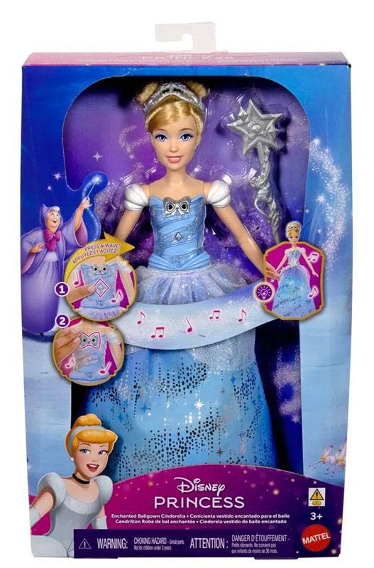 Disney Askepot-dukken i Den Fortryllede Balkjole bringer det magiske øjeblik fra filmen til live, hvor Askepots kjole forvandles i et funklende glimmershow. Børn kan selv genskabe forvandlingen derhjemme ved at føre den medfølgende tryllestav eller hånden hen over dukken og aktivere et farverigt lysshow med magiske lydeffekter – helt uden trylleord.