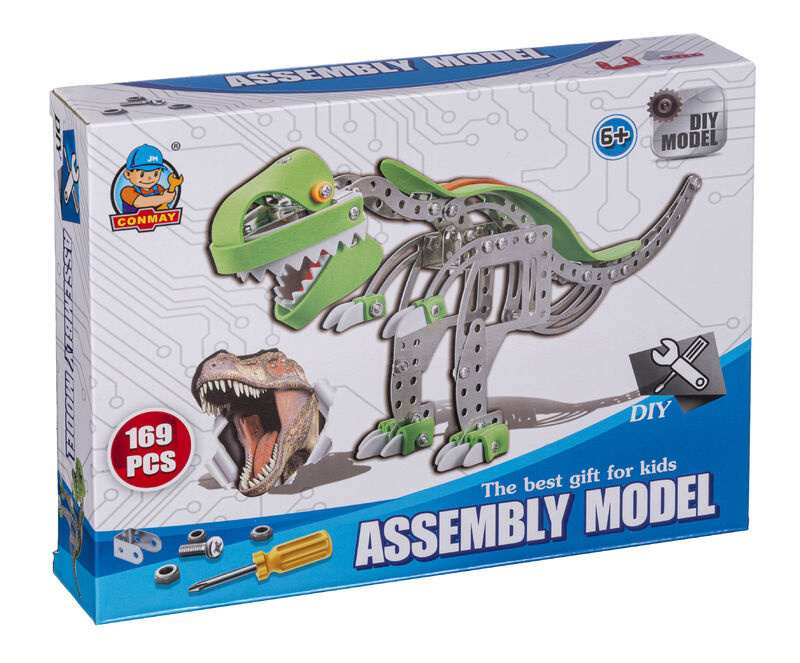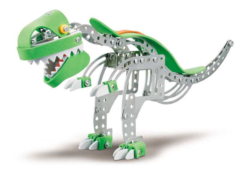 Byg din egen seje dinosaur med dette metal byggesæt med 169 dele. Et sjovt og solidt sæt til børn, der elsker at samle og skrue.