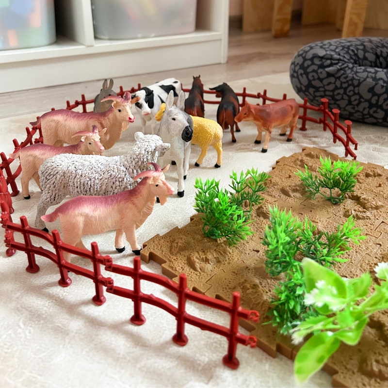 Træd ind i en verden fuld af sjov, fantasi og læring med dette farverige og omfattende legesæt som er perfekt til små børn, der elsker dyr, natur og livet på landet. Med hele 57 dele får dit barn utallige muligheder for at skabe sin helt egen bondegård – lige fra dyrene, der græsser på marken, til træerne og hegnet, der indrammer folden.