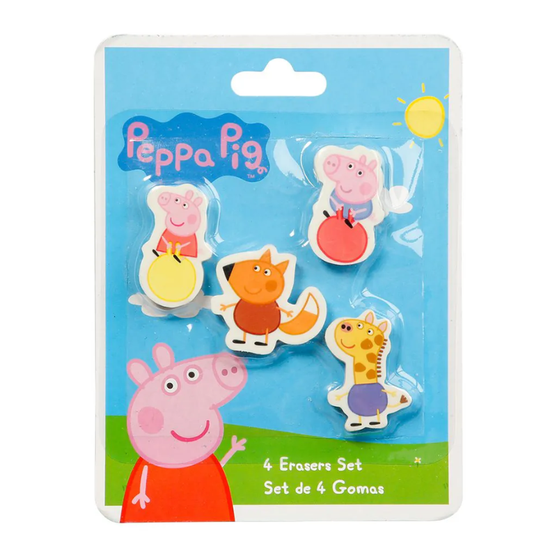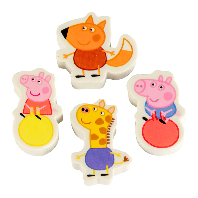 Sjove viskelædere med kendte figurer Sæt med 4 farverige viskelædere formet som populære figurer fra Gurli Gris-universet. Perfekte til penalhuset og gør det lidt sjovere at rette fejl i skolearbejdet.