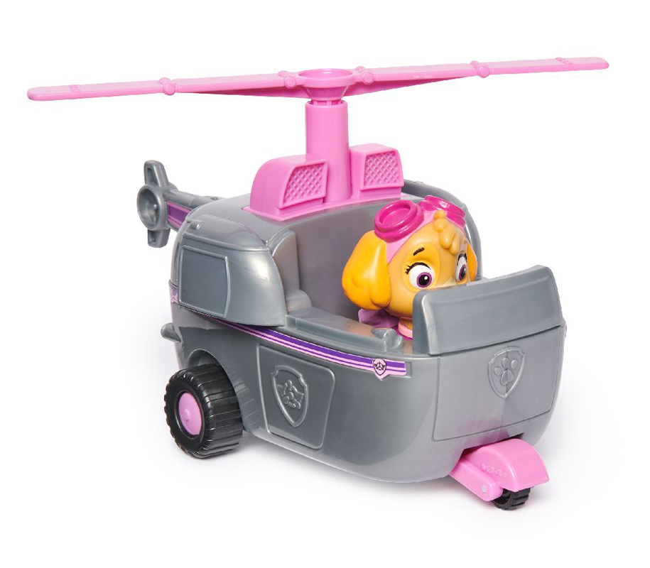 Skye's helikopter med en Skye figur der kan sidde i køretøjet og som kan tages ud. Helikopteren måler ca. L18 x 11 x D9 cm. og er lavet i mindst 65% genbrugsplast.