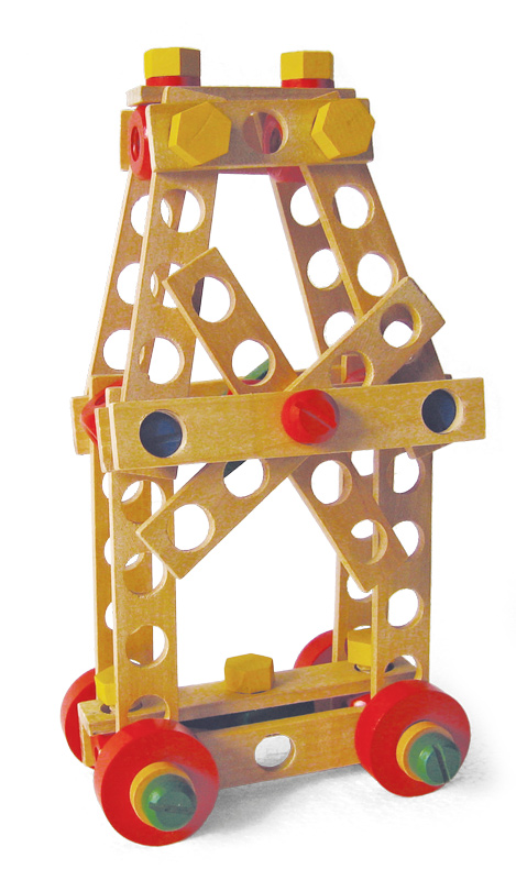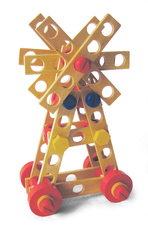Træklodserne kan bruges til at opbygge alt fra tårne og broer, vindmøller eller andre fantasifulde figurer.