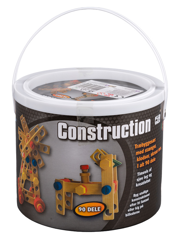 Træbyggesæt med 90 dele i spand