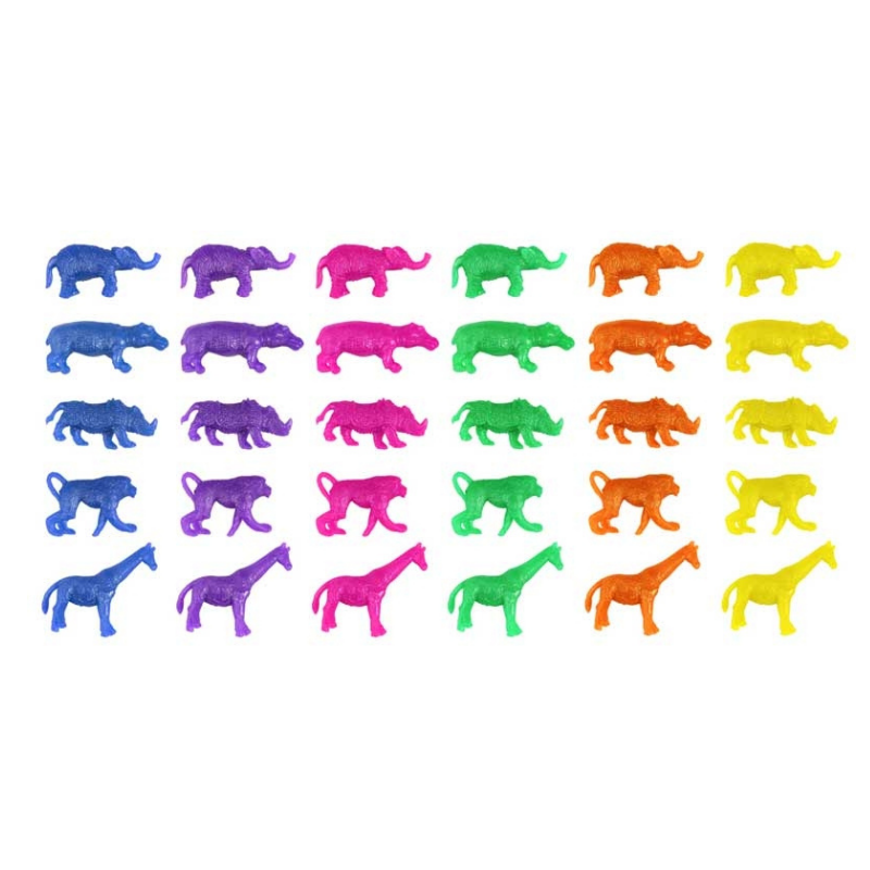Små, elastiske legetøjsdyr med jungletema, perfekt som festgave, overraskelse i goodiebags eller bare til leg og sjov.