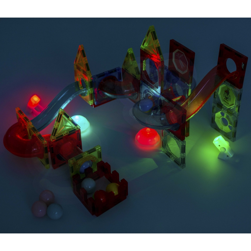 De magnetiske klodser i dette sæt gør det nemt for børn at sætte elementerne sammen og skabe stabile konstruktioner uden brug af lim eller løse dele. Ved at bygge et slot, en borg eller fantasibygninger får barnet mulighed for at eksperimentere med former, farver og rumlig opbygning.