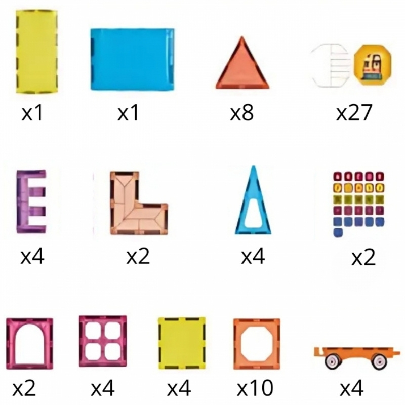 • Indeholder 71 dele: magnetiske byggeklodser, hjulplatforme, figurer og dekorationer