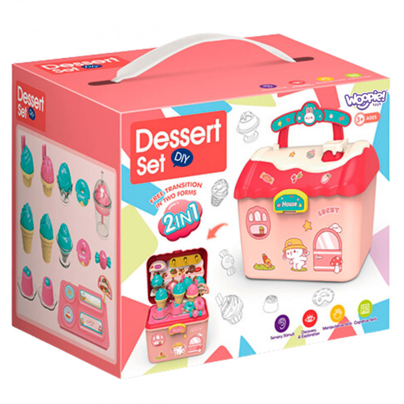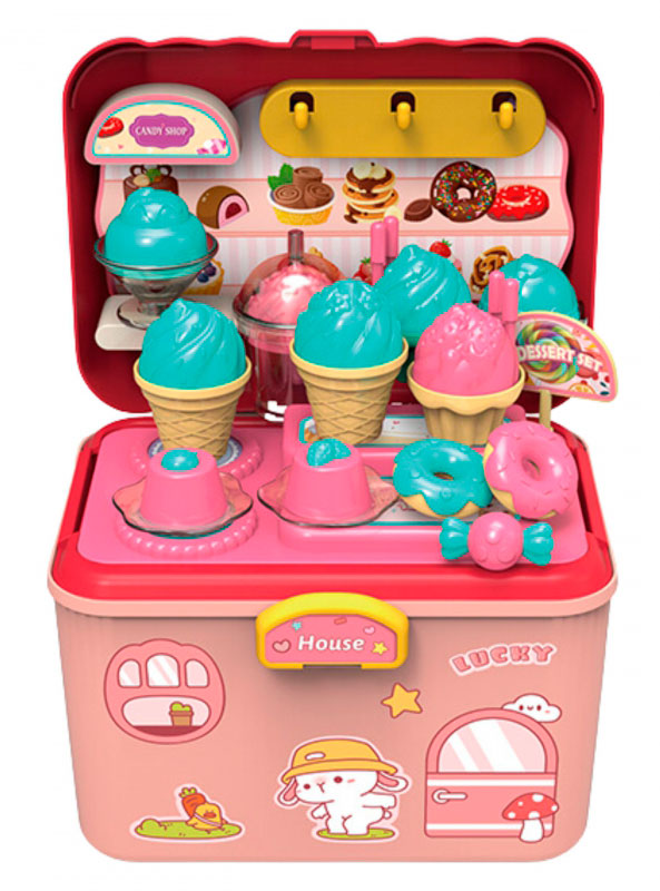 Sættet indeholder masser af lækre legegodbidder som is, donuts, cupcakes, desserter og milkshakes, så barnet kan sammensætte sit helt eget konditori. Kufferten kan nemt åbnes og forvandles til en lille butik, hvor der kan leges rolleleg som både konditor og kunde.