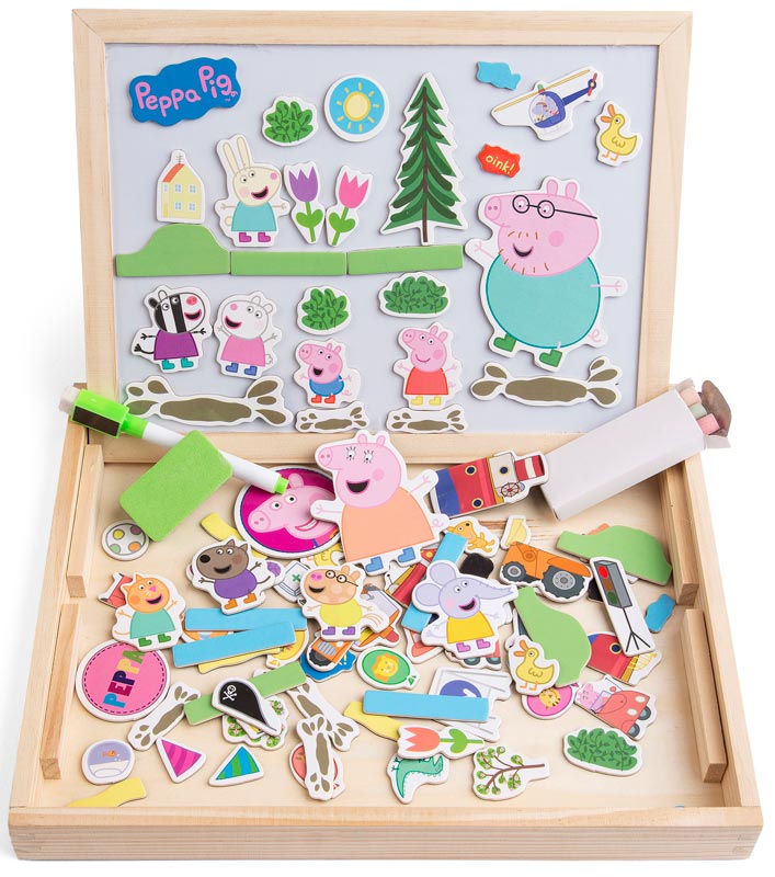 Gurli Gris tegnetavle som kommer med kridttavle samt magnettavle, så du kan tegne med de med følgende kridt. Du kan også tegne på magnettavlen med den medfølgende tusch, som let kan tørres af igen. Alle de sjove Gurli Gris figurer kan sidde fast på magnettavlen og du kan lave dit helt eget landskab med Gurli Gris. Det hele opbevares i en trækasse.