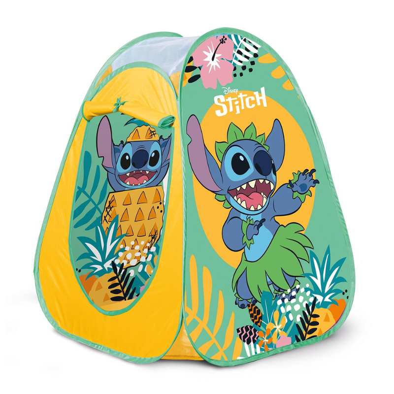 Gør legen ekstra sjov med dette farverige Stitch pop-up telt! Perfekt til både inde- og udendørs leg – nemt at slå op og pakke sammen igen.