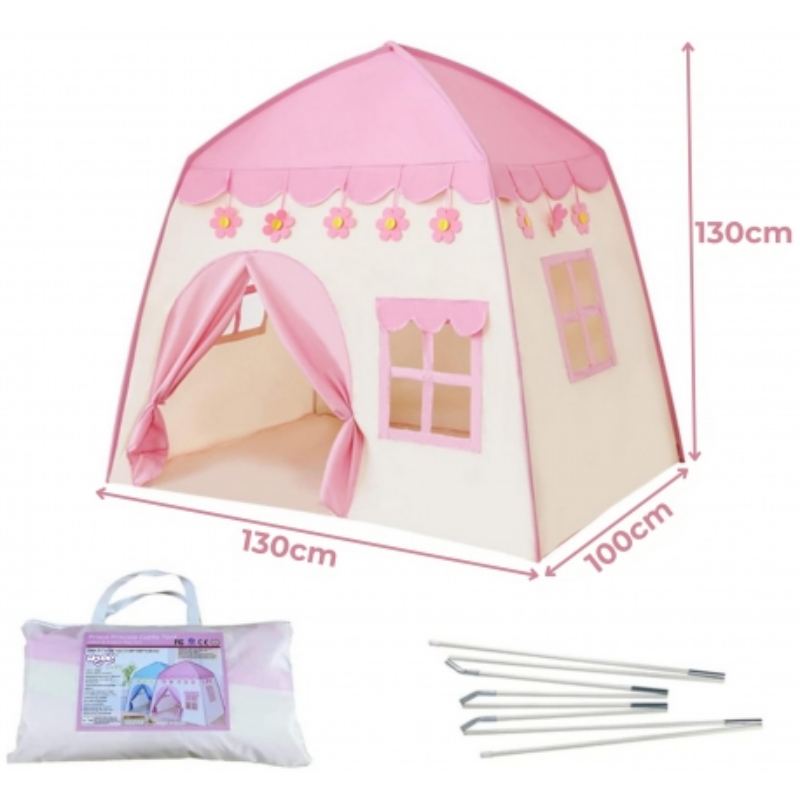 Dette smukke telthus er det perfekte sted til hygge og eventyrlige lege - både i haven, stuen eller på værelset. Med fine blomster- og lyserøde detaljer vil dette passe perfekt til eventyrlig leg og glæde!
