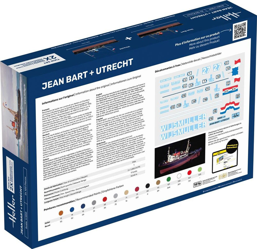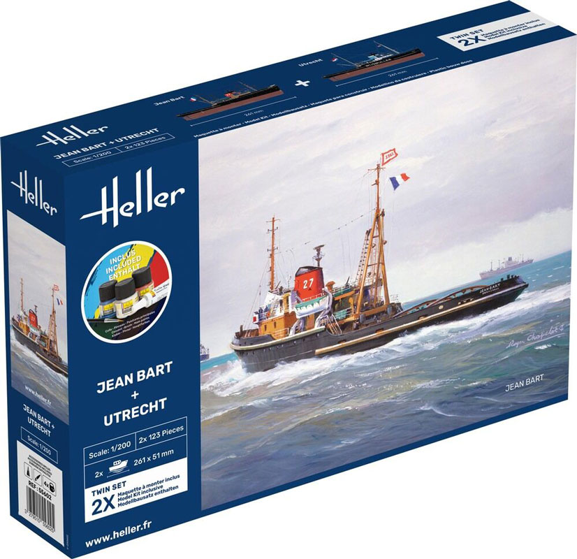 Heller modelskibe samlet i en pakke, hvor du får begge modeller JEAN BART + UTRECHT. Begge modeller er fra 1956 og er flotte modeller af slæbebåde.