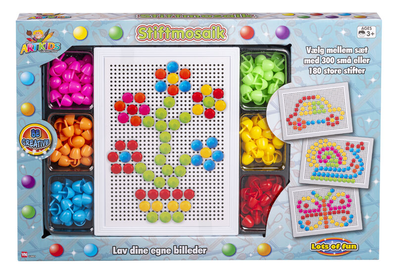 Slip fantasien løs med ARTKIDS Stiftmosaik! Lav flotte billeder med farverige stifter, der nemt sættes i hullerne på pladen. En kreativ klassiker, der træner koncentration og finmotorik.