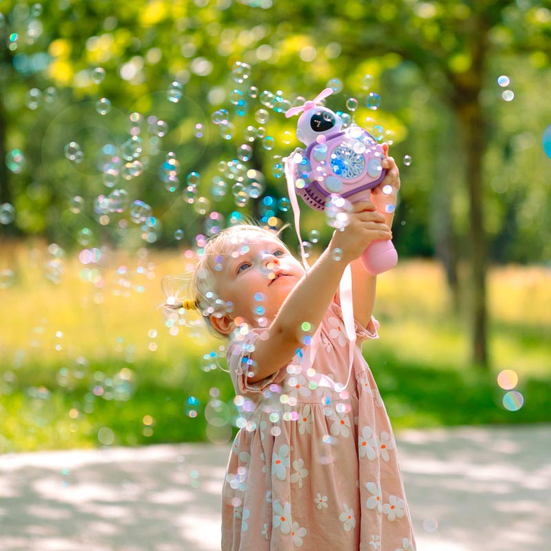 Den indbyggede ventilator blæser boblerne langt væk, så legen bliver endnu sjovere, både inde og ude. Astronauten har flotte lyseffekter, der gør boblelegen ekstra spændende, især i skumringen.