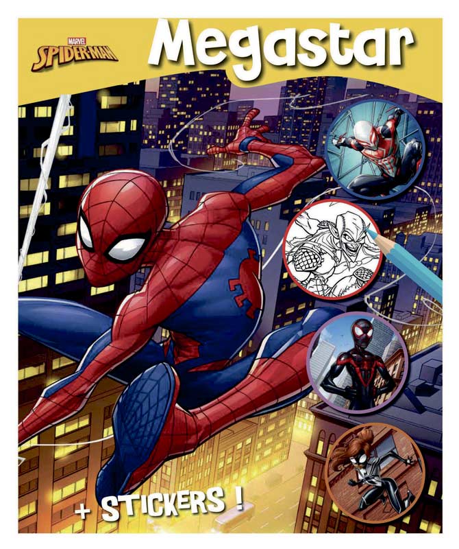 Megastar malebog med Spiderman og andre superhelte fra Marvel samt stickers