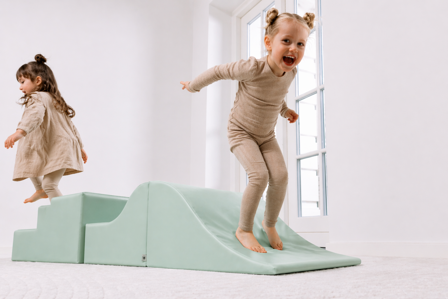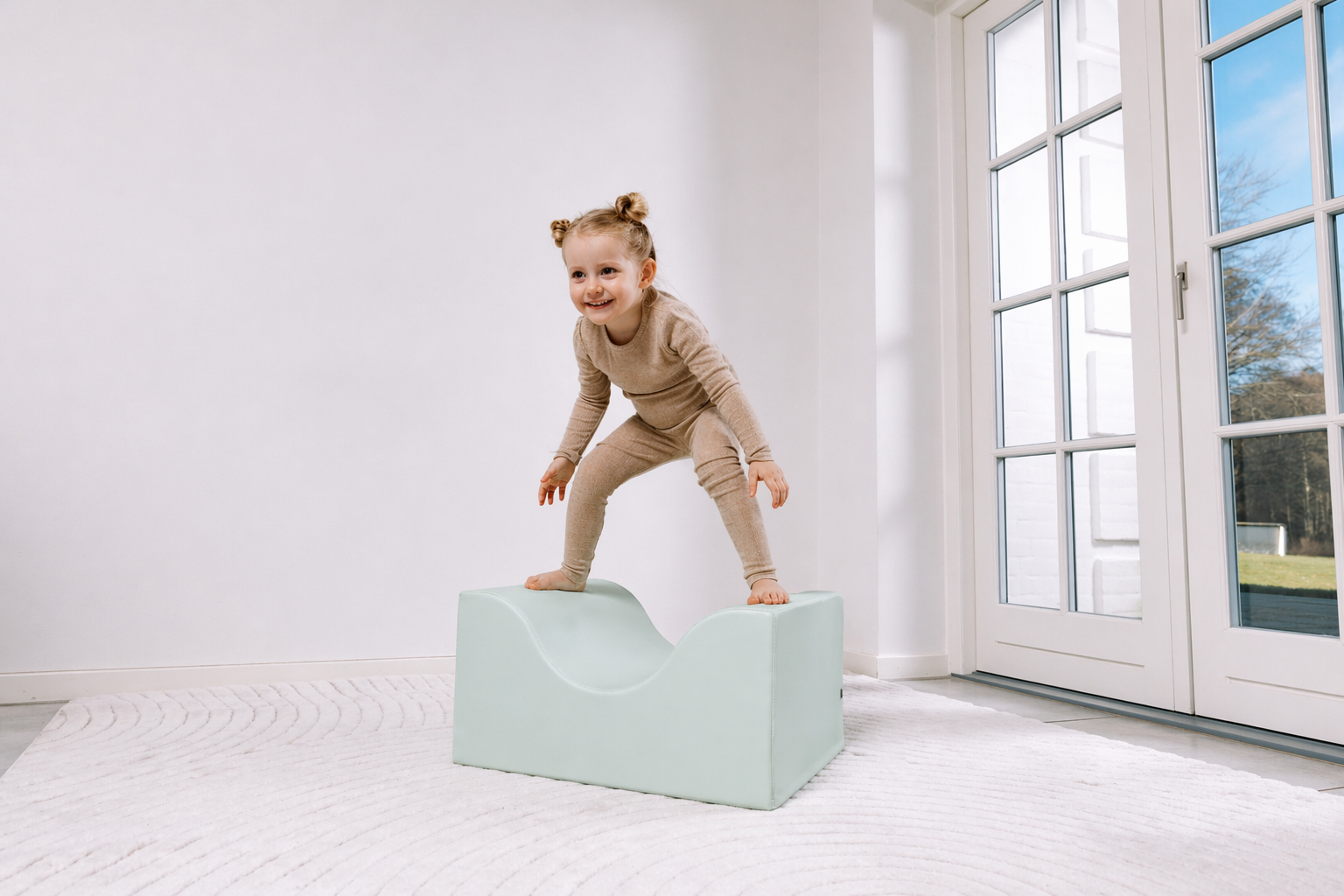 Det slidstærke betræk i vegansk læder gør sættet nemt at rengøre og ideelt til både hjemmet og institutioner. Designet understøtter barnets motoriske udvikling, balance og fantasi gennem leg.