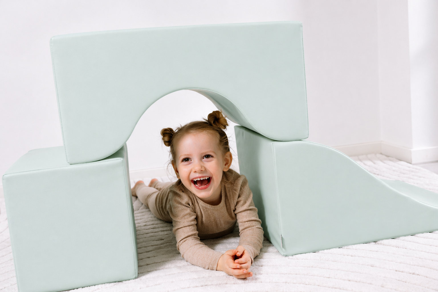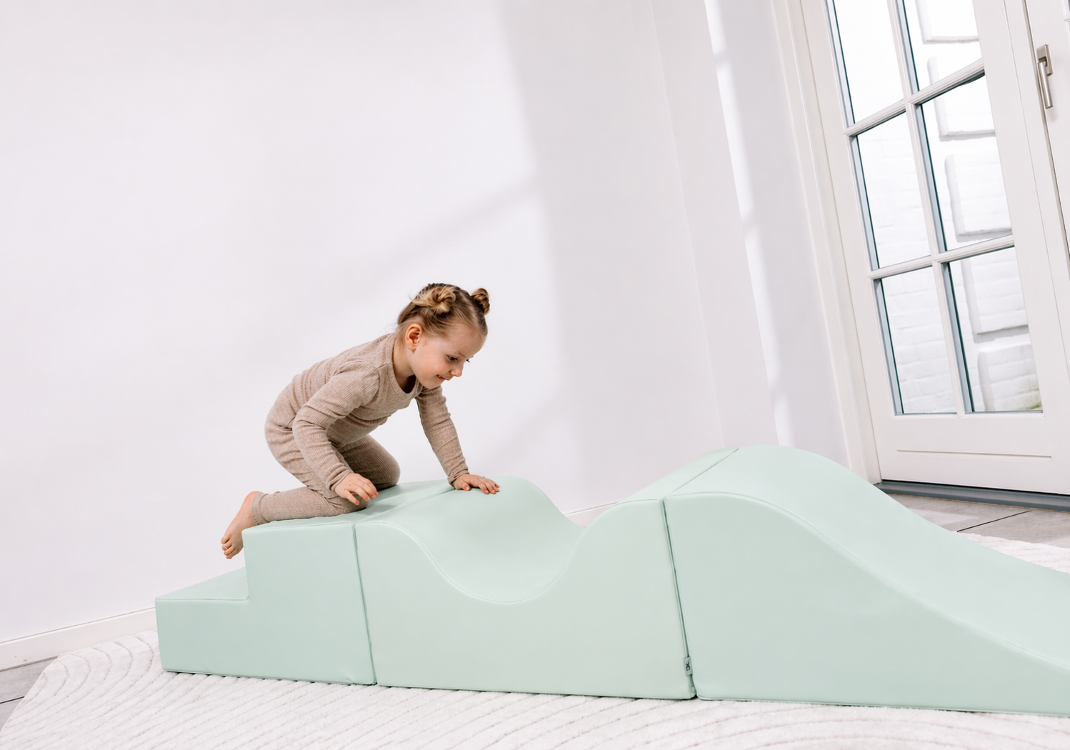 Dette modulære skum legesæt består af tre dele – bølgebakke, trappe og rutsjebane – som kan kombineres på forskellige måder og skabe timevis af sjov leg. Sættet er fremstillet i skum med høj densitet, som giver god stabilitet og komfort, samtidig med at det er sikkert for barnet at lege på.