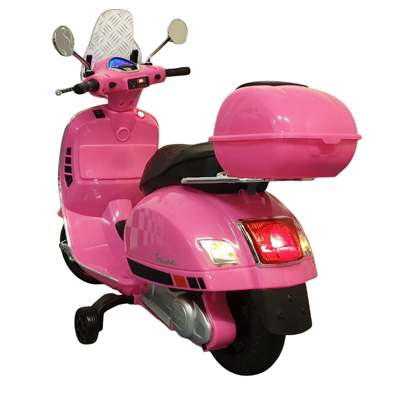 Giv dit barn en stilfuld køreoplevelse med denne licensproducerede Vespa GTS el scooter i pink. Modellen er udstyret med både forrude og bagboks, hvilket giver et autentisk og eksklusivt Vespa-look.