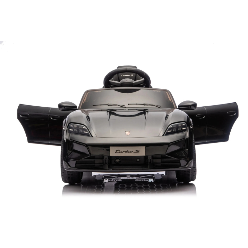 Denne Porsche Taycan elbil til børn i sort kombinerer eksklusivt design med moderne funktioner. Modellen er velegnet til børn fra 3 år og giver en realistisk og komfortabel køreoplevelse.