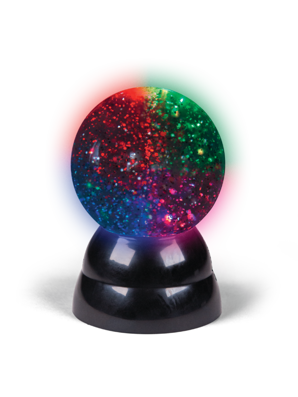 Flot kugle der har glitter og lyser i flotte farver. Kuglen måler 9,5 cm. i diameter og har super flotte effekter. Når kuglen lyser op kan man se glitter og lyset blande sig og give en flot effekt.