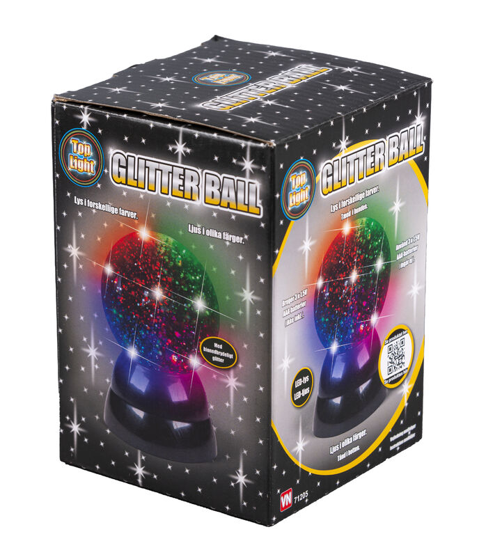 Glitter kugle med flotte farver og lys