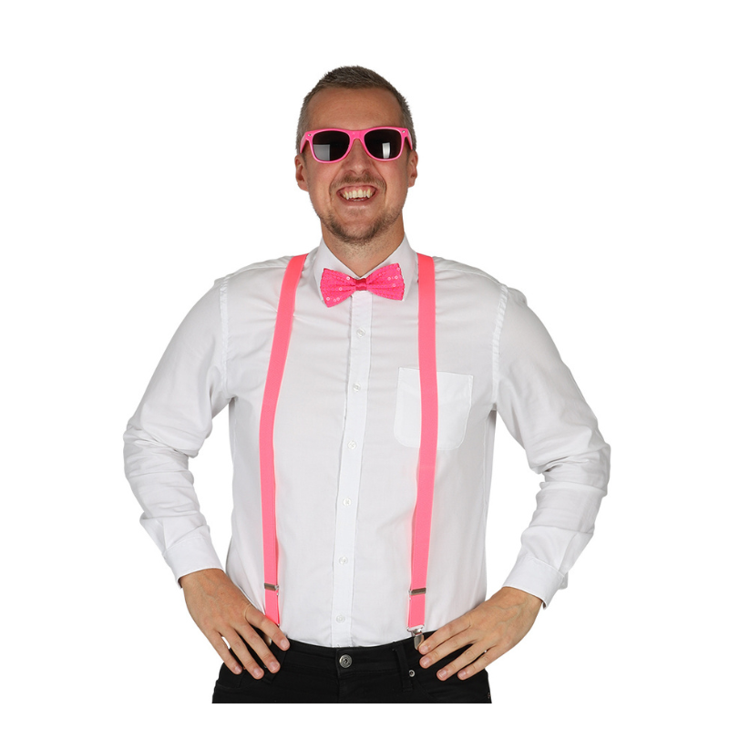 Skab farve og feststemning med dette neon udklædningssæt i pink. Sættet er perfekt til temafester, 80’er fester, festivaler eller bare til at pifte hverdagen op med et sjovt og farverigt look.