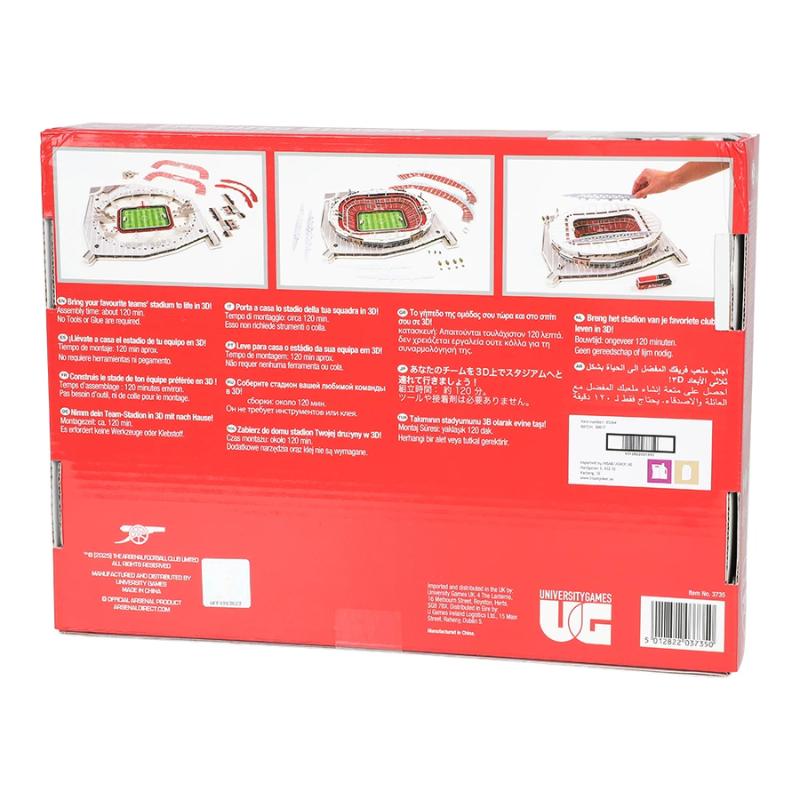 Tag stemningen fra kampdagen med hjem med dette flotte og detaljerede 3D-puslespil af Emirates Stadium. Et oplagt valg for enhver Arsenal-fan, der vil kombinere kreativ udfoldelse med kærligheden til klubben. Puslespillet byder på masser af genkendelige detaljer og ender som en imponerende stadionmodel, der er perfekt til udstilling.
