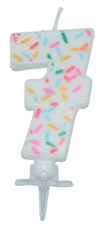 Ingen fødselsdagskage uden lys. Pynt kagen med dette flotte fødselsdagslys formet som tallet 7, dekoreret med farverig krymmel. Perfekt til at markere fødselsdagsbarnets alder og skabe festlig stemning.