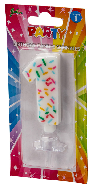 Ingen fødselsdagskage uden lys. Pynt kagen med dette flotte fødselsdagslys formet som tallet 1, dekoreret med farverig krymmel. Perfekt til at markere fødselsdagsbarnets alder og skabe festlig stemning.
