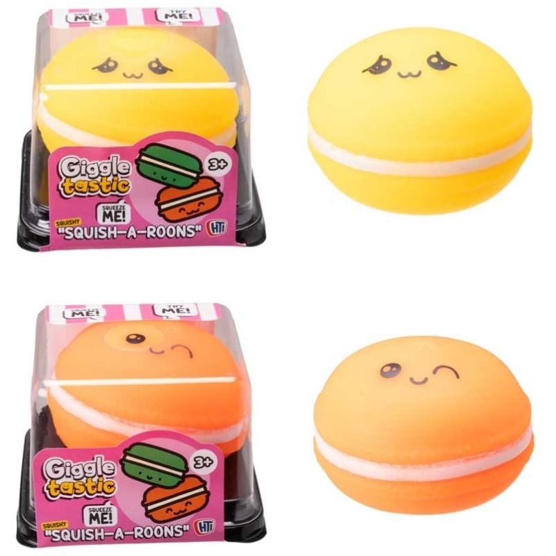 Giggle Tastic Squish-a-roons giver farverigt og blødt sjov til sanselegen med fire søde figurer at samle på. Hver figur har et charmerende ansigt, der gør dem perfekte til små hænder, som kan klemme, trykke og udforske.