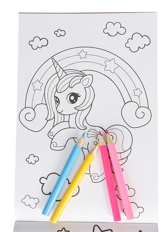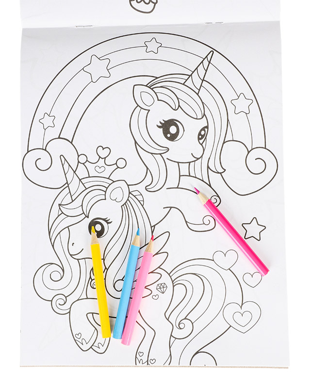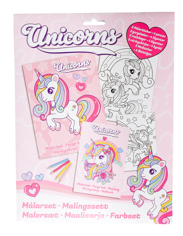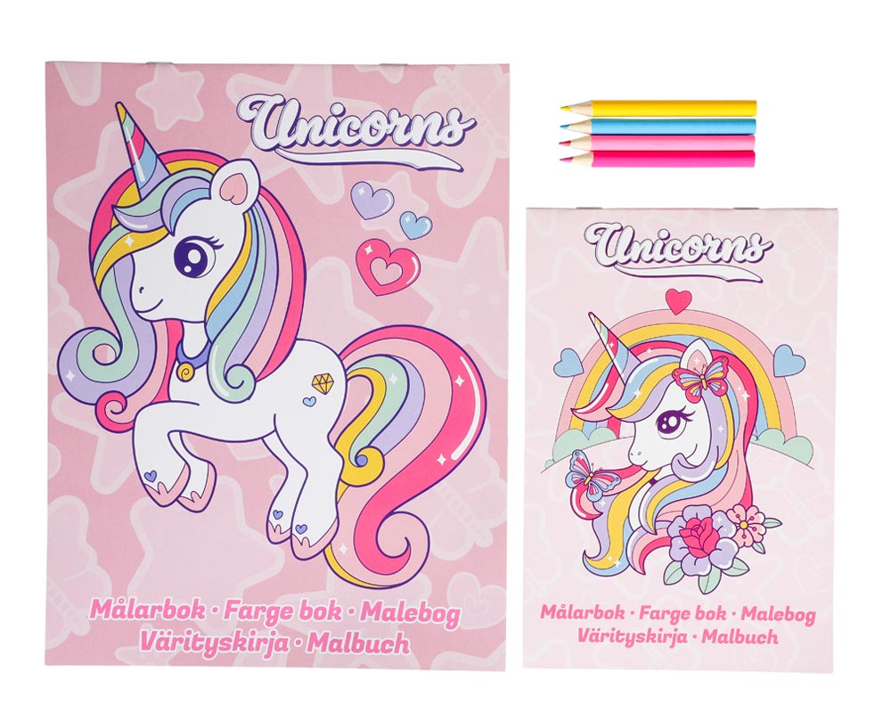 Gør farvelægning ekstra magisk med Unicorns Colouring Set. Sættet indeholder to malebøger fyldt med søde enhjørningsmotiver samt 4 farveblyanter, så barnet kan gå i gang med det samme. Perfekt til kreative pauser derhjemme, på ferie eller i weekenden.