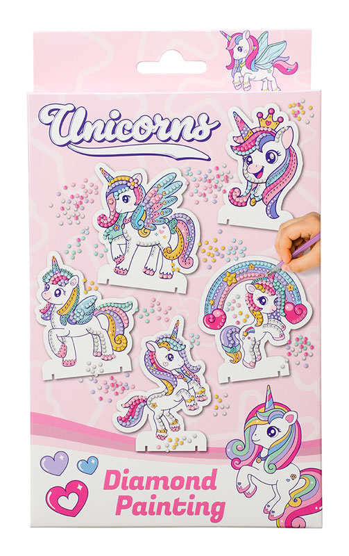 Skab flotte og glitrende motiver med dette Unicorn diamond painting-sæt, hvor barnet kan dekorere søde enhjørninger med farverige “diamanter”. En sjov og kreativ aktivitet, der kombinerer koncentration, finmotorik og fantasi.