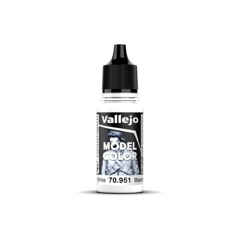 Vallejo Model Color White 70.951 er en højkvalitets akrylmaling i 17 ml flaske, perfekt til maling af miniaturer, figurer og modeller. Farven giver en flot, ren hvid finish med god dækkeevne.