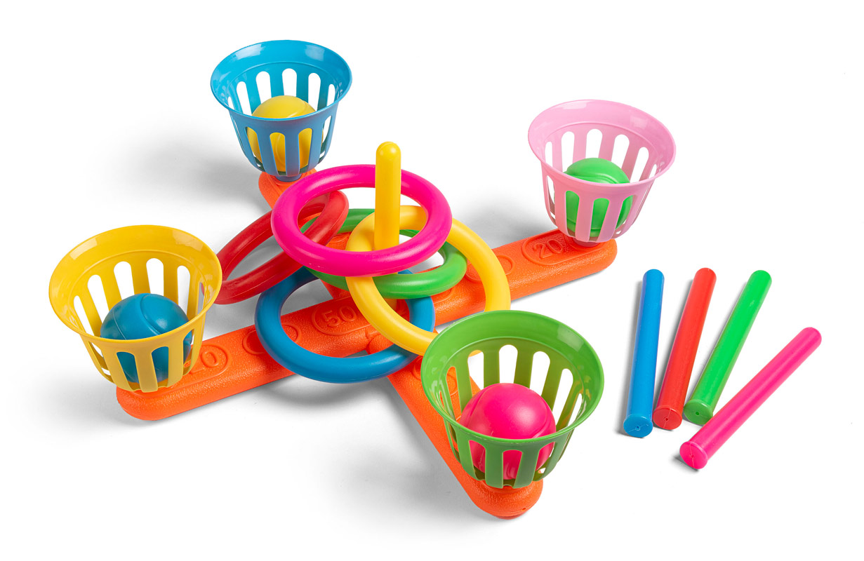 Sjovt ringspil med ringe og bolde. Hvis du ønsker et lille twist i det kendte ringspil så skift til små kurve hvor du skal ramme boldene i.
