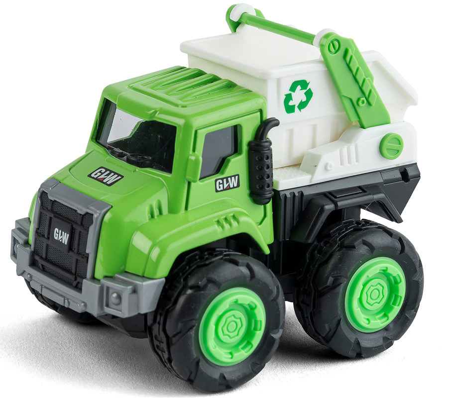Fin lille skraldebil i klare grønne og hvide farver fra Speedcar. Skraldebilen har mulighed for at løfte og tippe ladet, så barnet kan lege man kører ud og samle materialer op. Skraldebilen er desuden med friktion så den fortsætter i lang tid hen over gulvet når man skubber den afsted.