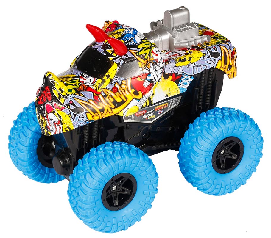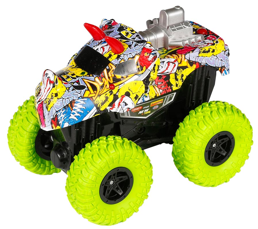 Mega animal monstertruck med store bløde hjul og kraftig friktion på alle dæk ( 4 x 4 ) som sikrer at monstertrucken fortsætter længe efter du skubber den afsted og nemt kommer over forhindringer!