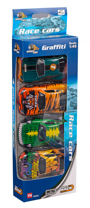 Speedcar bilerne er fremstillet i metal med plastdele i en skala 1:43. Bilerne har mange flotte autentiske graffiti detaljer.