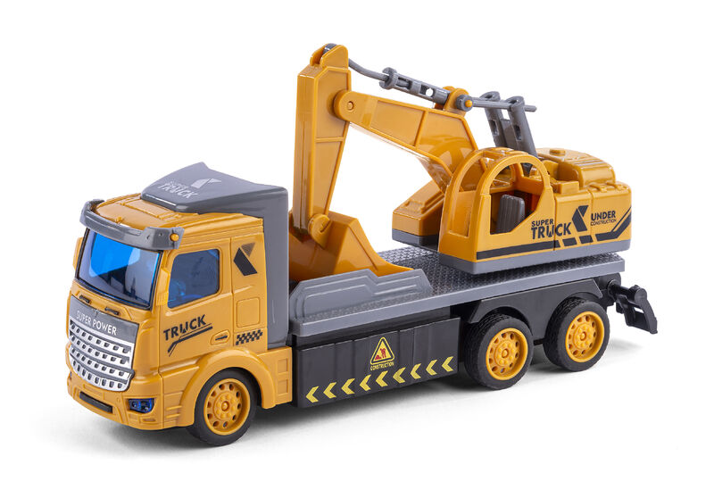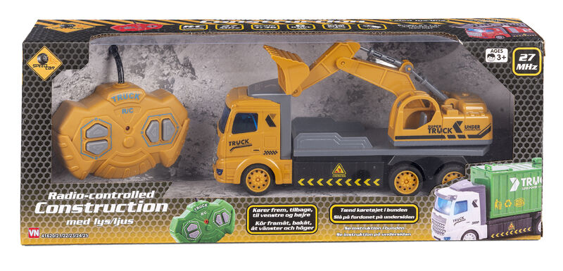 Klar til byggepladsen! Denne radiostyrede lastbil med gravko giver timevis af sjov og realistisk leg. Kør frem, tilbage, til højre og venstre – og se lyset blinke, mens arbejdet udføres.