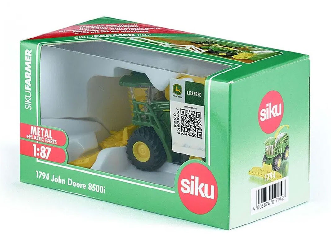 Siku John Deere 8500i finsnitter i målestoksforhold 1:87 er en detaljeret og robust model i metal og plast. Den har aftageligt og foldbart majsbord, bevægelig tud samt gummihjul med realistisk slidbane. Et perfekt supplement til resten af Siku Farmer-serien og ideel til både leg og samling.