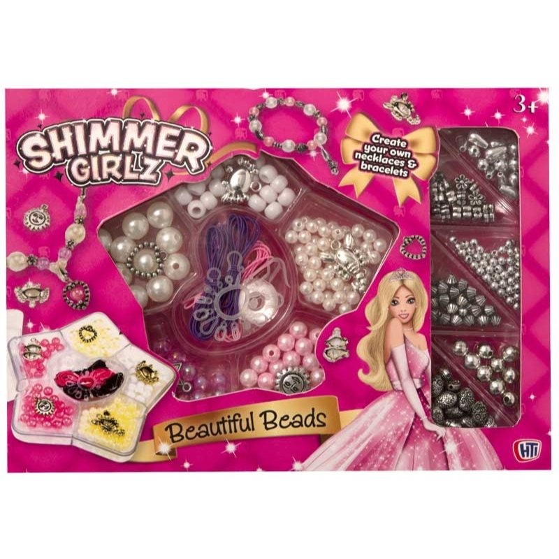 Dette smukke assorterede perlesæt fra Shimmer Girlz giver børn mulighed for at skabe deres egne smykker og slippe fantasien løs. Hvert sæt findes i to forskellige designs og indeholder et udvalg af perler, herunder smukke perlemorsperler, samt snor til at samle smykkerne.
