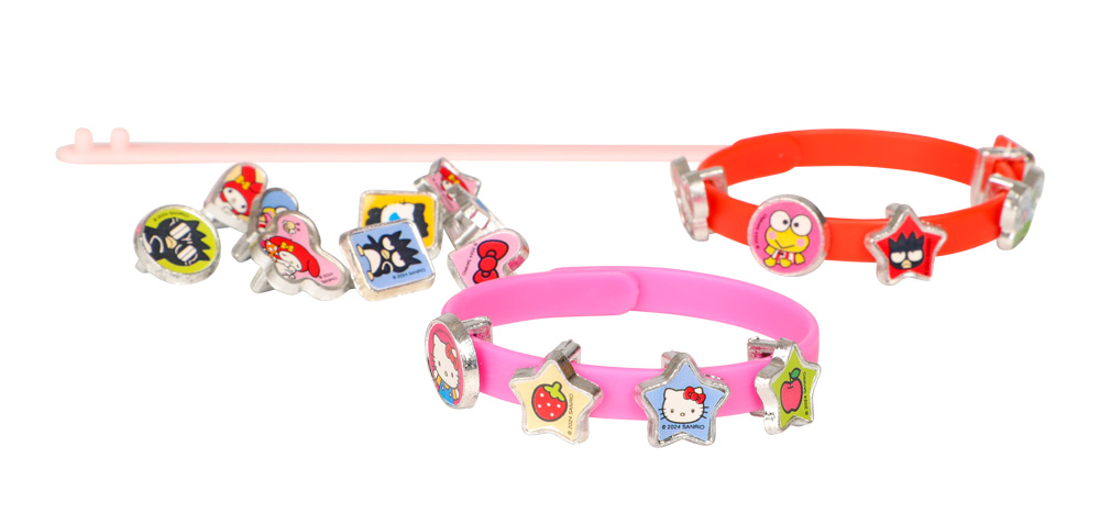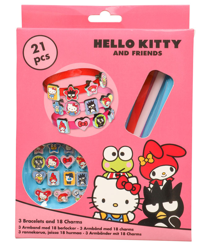 skab dine helt egne armbånd med dette søde og kreative hello kitty and friends-sæt. barnet kan designe personlige smykker med fine vedhæng med de velkendte figurer fra hello kitty-universet og skifte ud igen og igen.